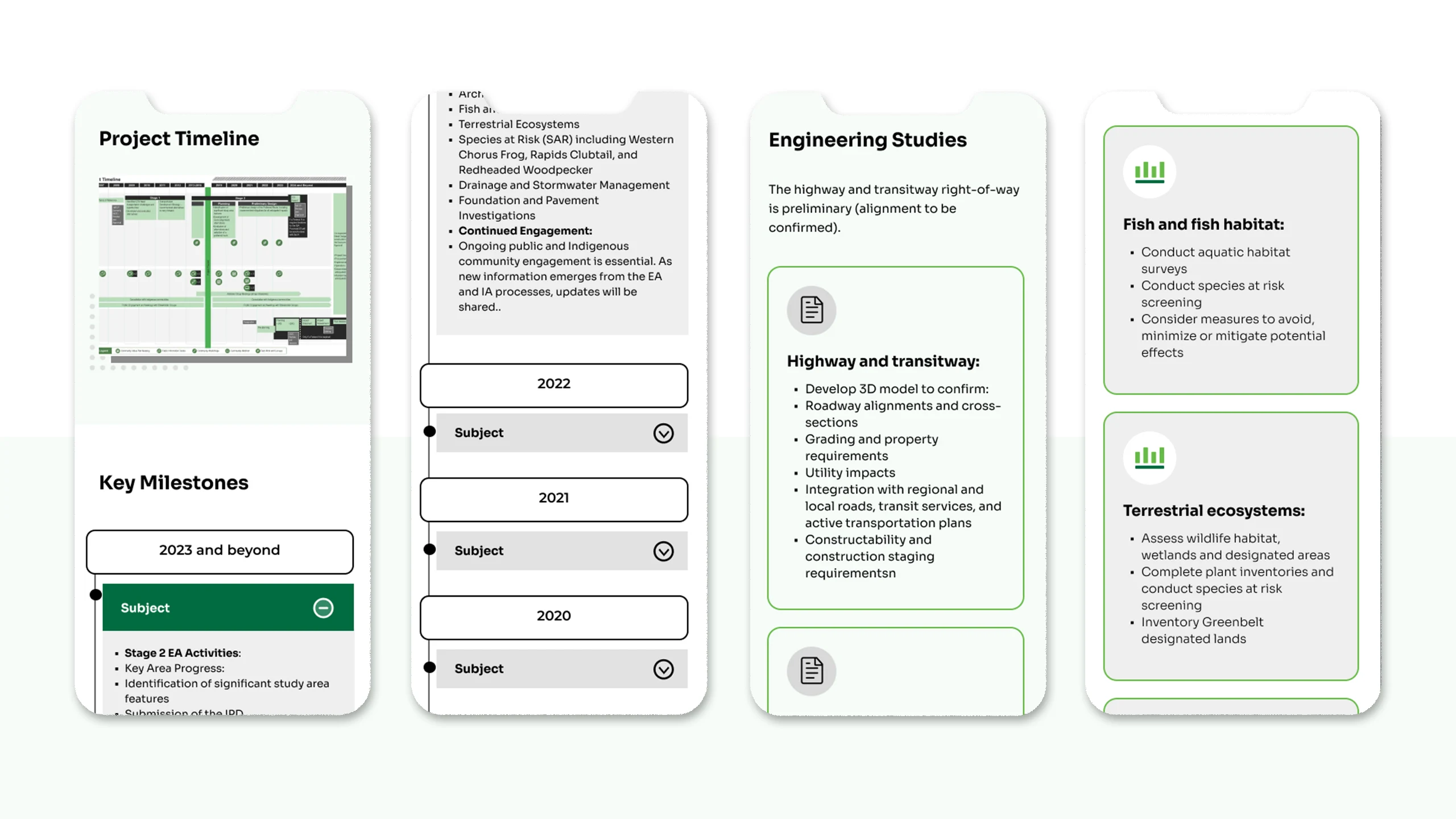 I also created responsive mobile layouts to provide a seamless experience across all devices. The final design enhanced public access to project information and received positive feedback from both stakeholders and community users.